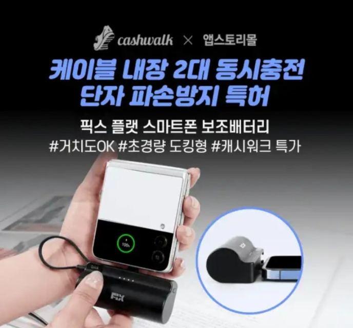 2대 동시 충전 가능한 '픽스 플랫 스마트폰 보조배터리'는 외부 충격에도 단자 파손 걱정없는 특허받은 독자적 기술을 적용했으며, 불필요한 선 없이 작고 가벼운 OOOO으로 편리한 사용이 가능합니다. OOOO에 들어갈 단어는 무엇일까요? (초성힌트 : ㄷㅋㅌㅇ)