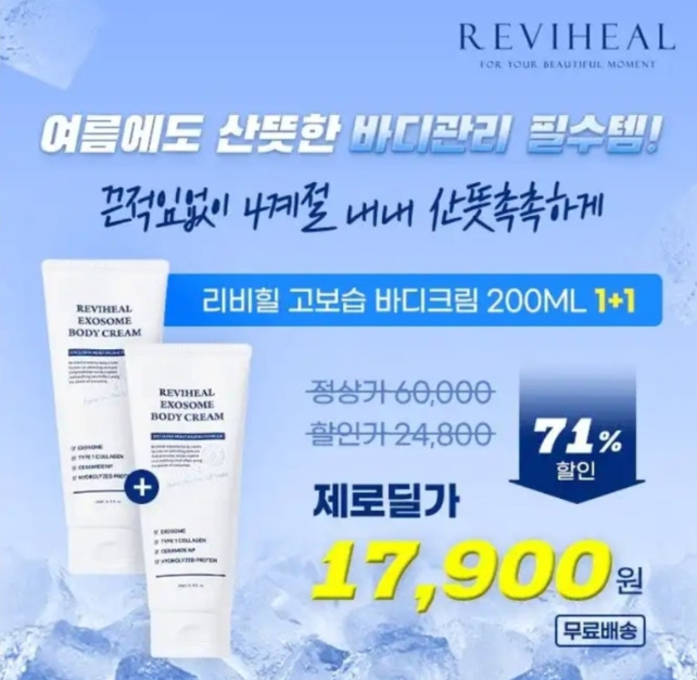 '리비힐 바디크림' 1+1 특가 찬스! '리비힐 바디크림'은 끈적임 없는 000 제형의 바디크림으로, 매일 사용가능한 부드럽고 순한 발림성을 가졌습니다. 리비힐 바디크림은 보습력이 뛰어나며 자극이 적은 온가족이 함께 사용하는 순한 바디크림으로, 아이용 크림은 따로 구매할 필요 없습니다.