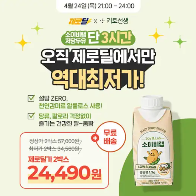 <딱 3시간만!> 소이비랩 저당두유 57% 할인 & 팩당 681원, 마지막 기회! 설탕 ZERO! 알룰로스를 사용한 소이비랩 저당두유는 OOO O과 목넘김을 위해 특수공정을 통해 영양성분은 보존한 채, 비지를 완전히 제거해 건강한 두유원액을 듬뿍 담았습니다. 콩비린내 없이 깔~끔하고 담백한 맛이 일품인 소이비랩을 만나보세요! OOOO은 무엇일까요?