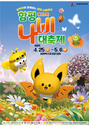 함평나비축제는 전라남도 함평군 함평엑스포공원 일원에서 매년 봄에 열리는 대한민국 대표 생태축제다. 2025년 제27회 축제는 4월 25일부터 5월 6일까지 12일간 “나비, 황금박쥐를 만나다”라는 주제로 개최된다4710. 축제는 꽃, 나비, 곤충을 소재로 한 다양한 전시와 체험, 문화행사로 구성되어 있으며, 군민과 관광객이 함께 즐길 수 있는 쉼과 여유의 공간을 제공한다14.