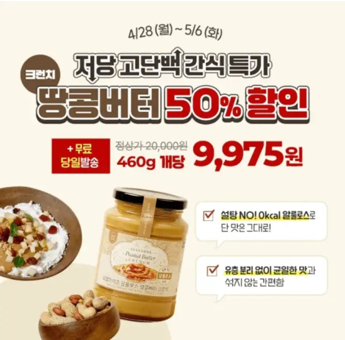 알룰로스 땅콩버터 크런치 50% 할인 이벤트 OPEN!